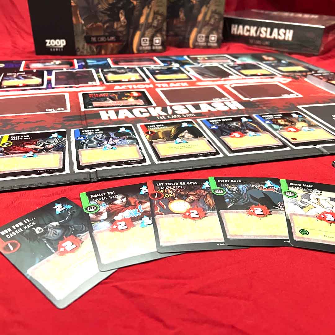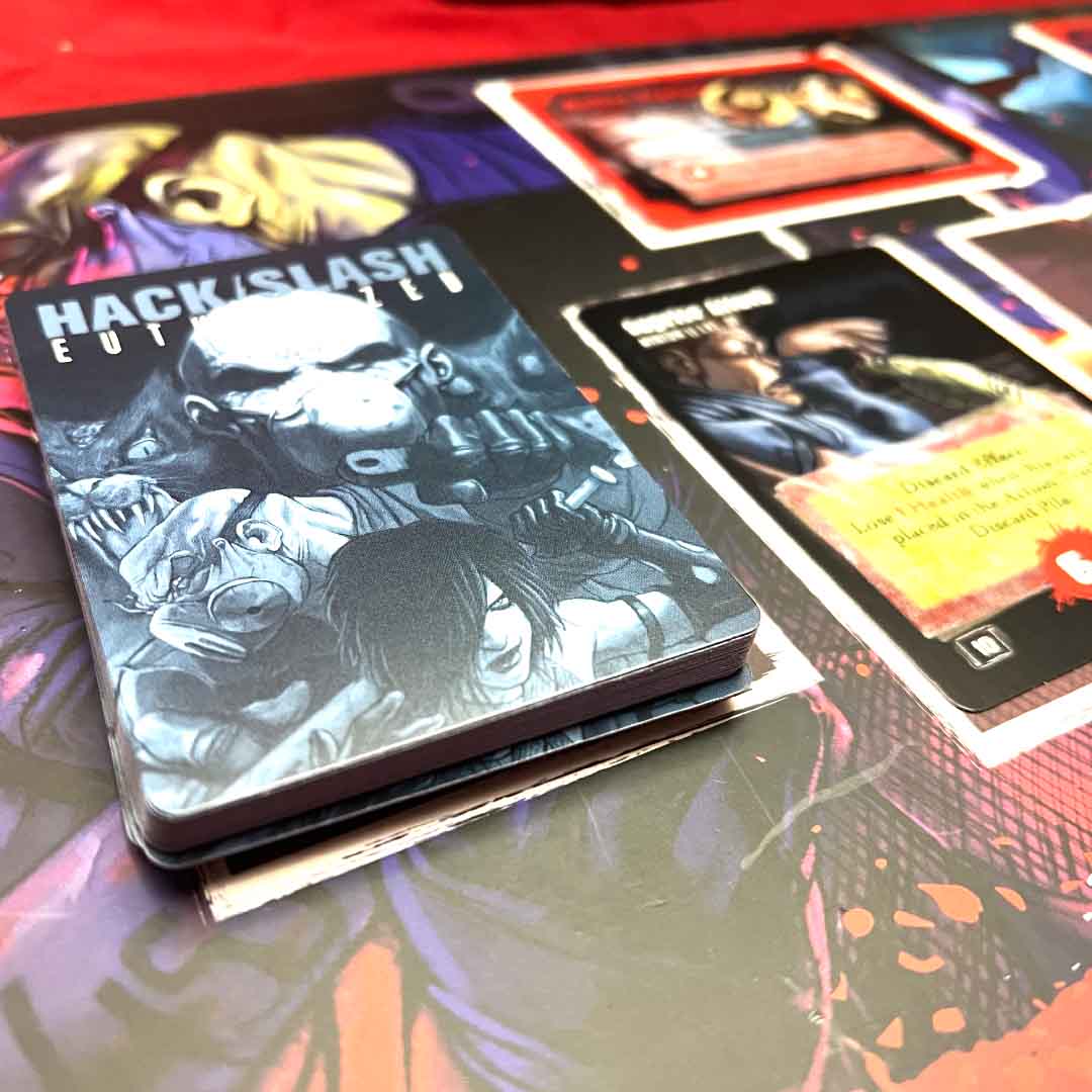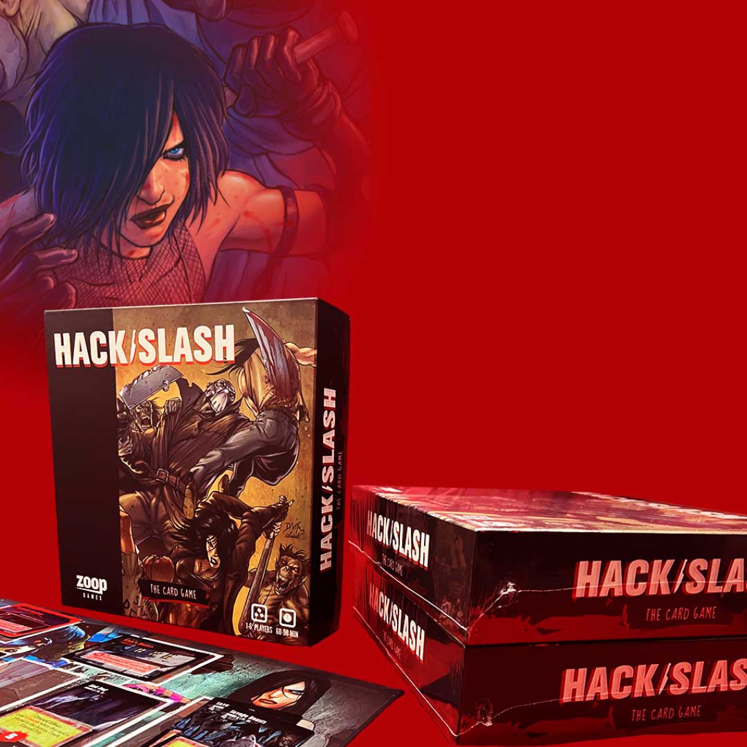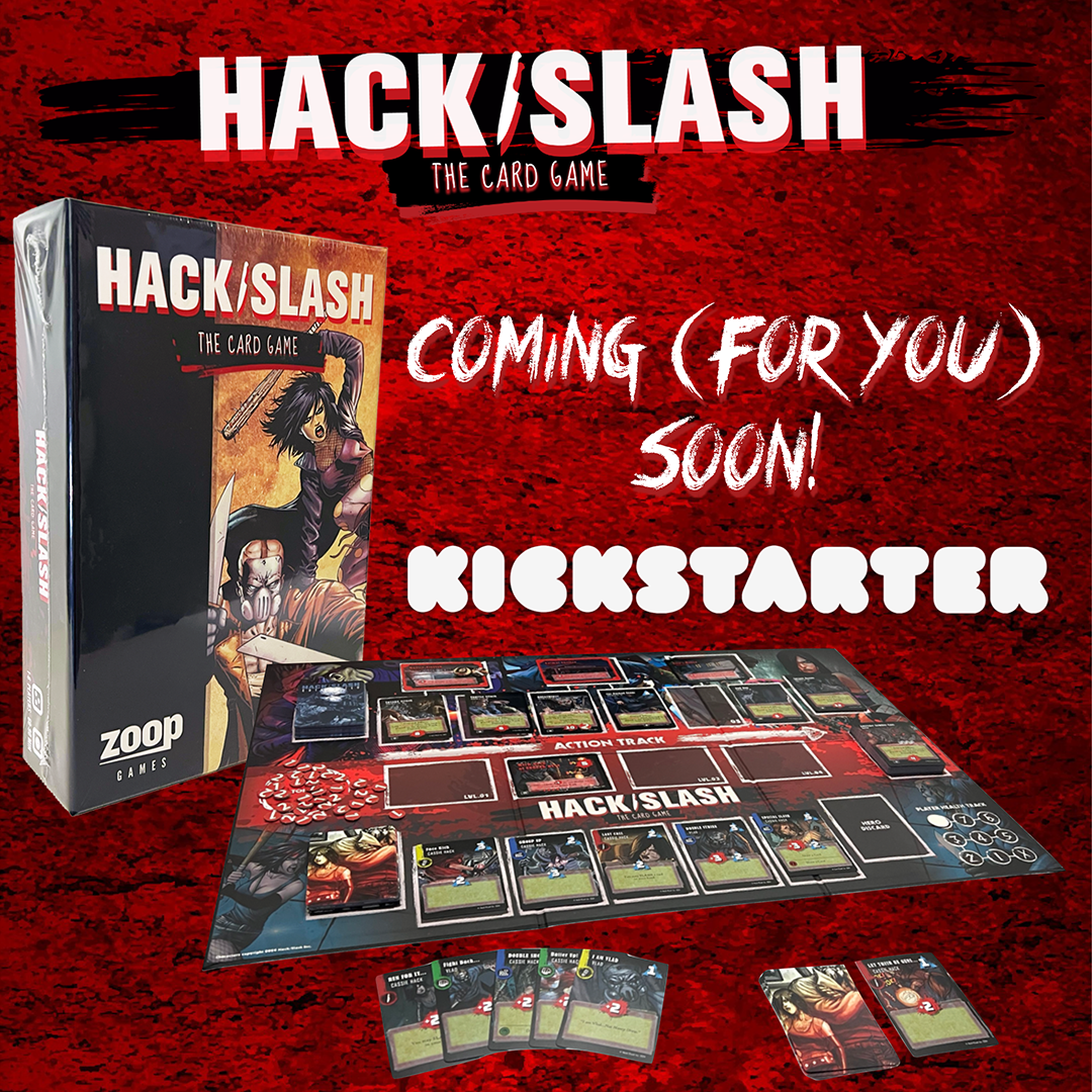 Hack/Slash: The Card Game - 2nd Edition brings the long-running comic's terror to your table in a cooperative deck-building game for 1-6 players. Step into the boots of Cassie Hack and Vlad, draft from the Hero Marketplace, and chain high-powered combos to clear the Action Track. Balance draft and attack energy, rescue victims, and face four escalating Slasher villains across story-driven locations and encounters pulled from the comics. Play solo or as a team, track high scores, and win by overcoming all four villains in the Euthanized storyline. Expansions like Six Sixx, Land of Lost Toys, and Back To School await. Back it on Kickstarter now.