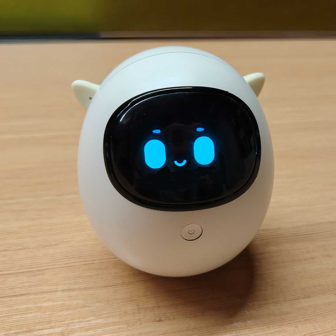 Egg-shaped friend that listens, reacts to touch and voice, and adds calm presence at your desk or bedside