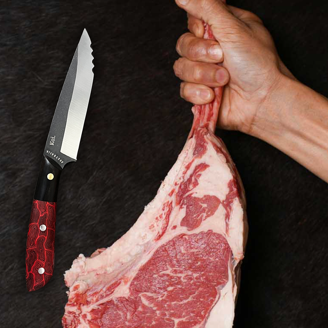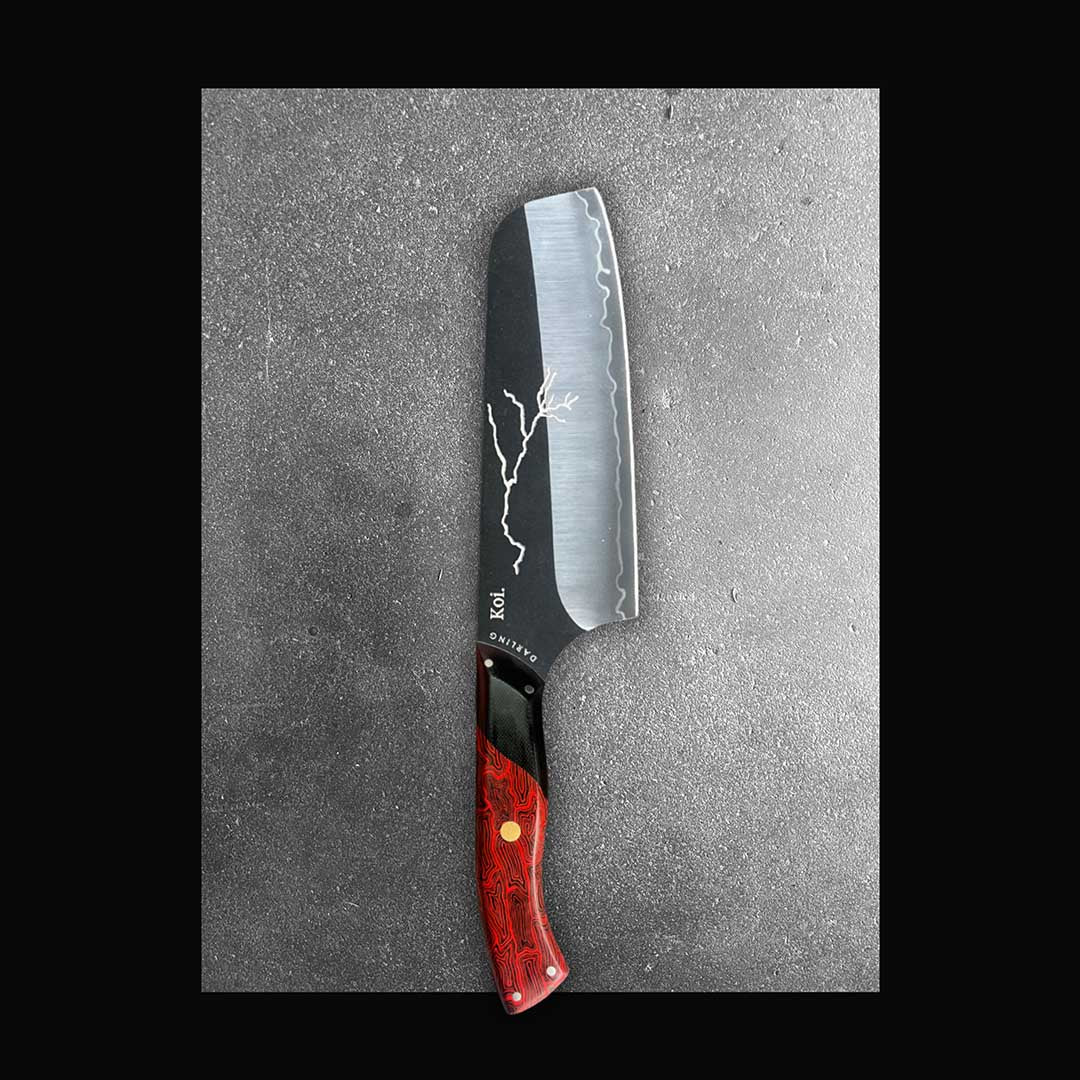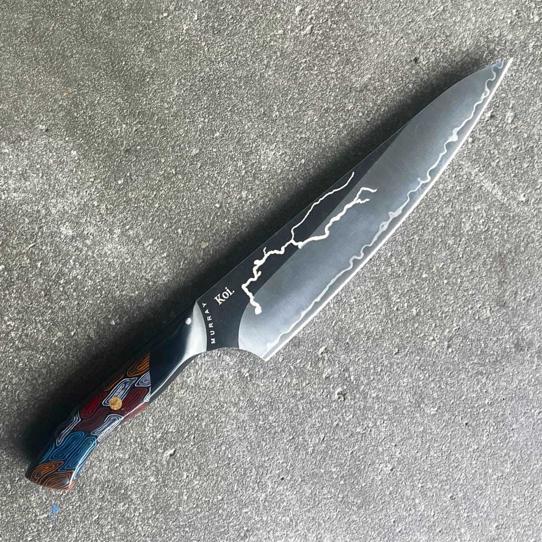 Koi Knives is the love child of two old schoolmates who are both obsessed with kitchen knives and cooking good food. Ray, an ex-contestant on Masterchef Australia has spent a fair period of time in the corporate world but his love of food has him back doing what really fires him up! Whilst Shannon, son of a blacksmith, has spent many years working with steel. Taught how to harden steel by eyeballing it with a blowtorch and a can of oil by his father when he was young, his love soon shifted to knives and honing that perfect edge. One day after eating too much at a dinner party, sitting and talking over a glass of Barossa Shiraz, talking about our different paths, the idea of Koi Knives was born. Let's create a knife that represents who we are....