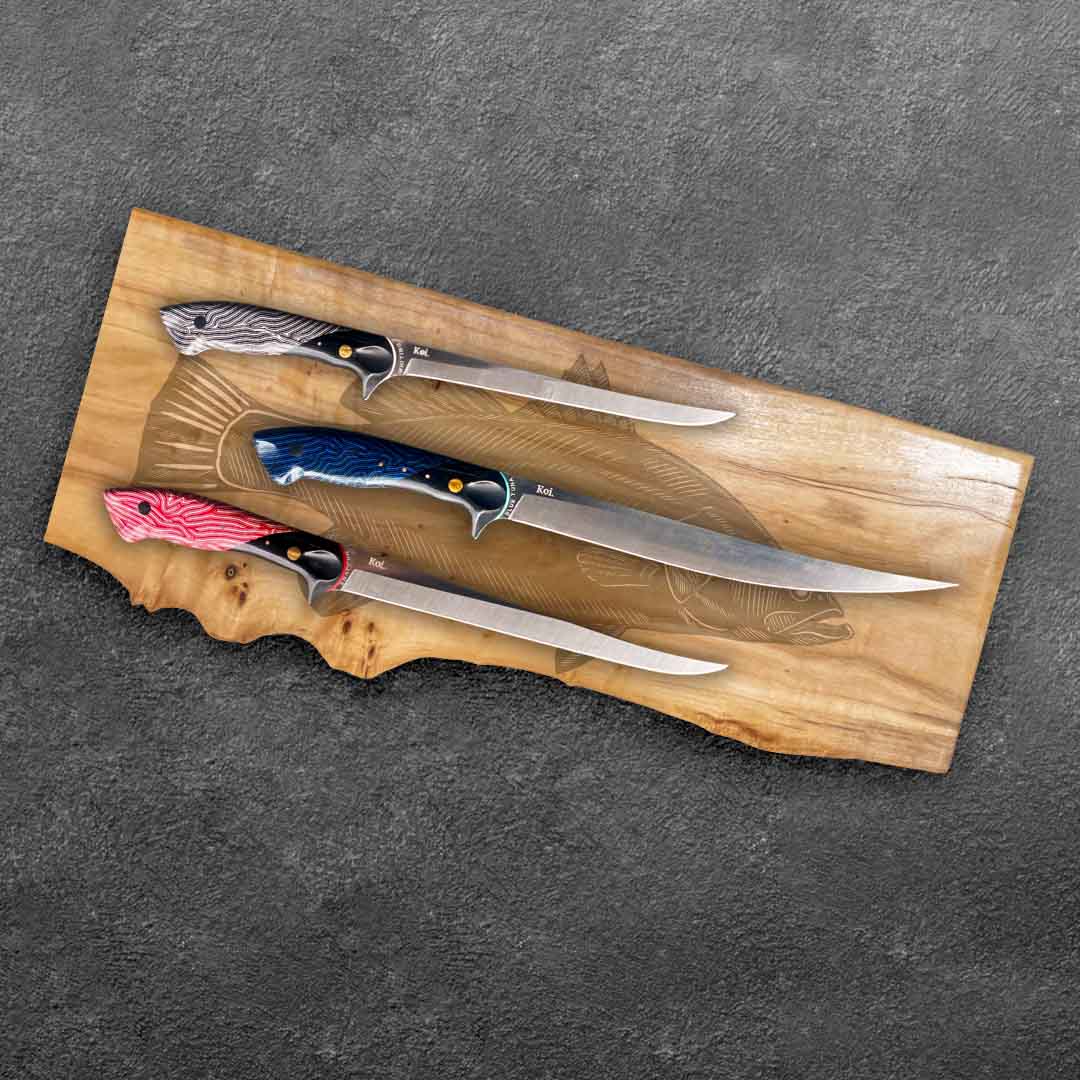 Beautiful and High quality knives ; Big Fan ; Saw the darling on jack ovens videos and knew I had to have the chopper ; Love this companys products ; I like the design and style of the knives and figured it was worth supporting. ; Koi Knives has been excellent both in the quality of its product and customer service and I am willi ; Prior experience with Koi Knives ;