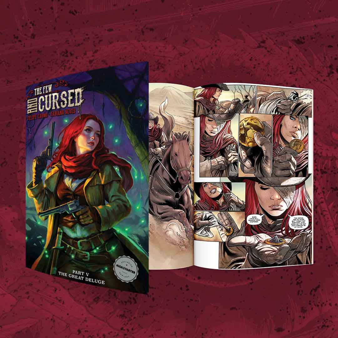 The Few and Cursed #12 - Season Finale brings the epic conclusion to The Great Deluge arc, the supernatural western that followed Red and her companions across ghouls, cults, and the ominous Phantom Train. Set in an Old West where water is currency and curses roam, this finale welcomes new readers with clear entry points and offers returning fans complete bundles from issues 7 to 12, plus earlier stories. Exclusive Kickstarter variant covers, including a photo edition and a 10 year anniversary cover, return alongside stretch goal freebies and add-ons like metal cards, a deck of cards, pins, and more. Saddle up with Red and close the chapter. Back it on Kickstarter now.