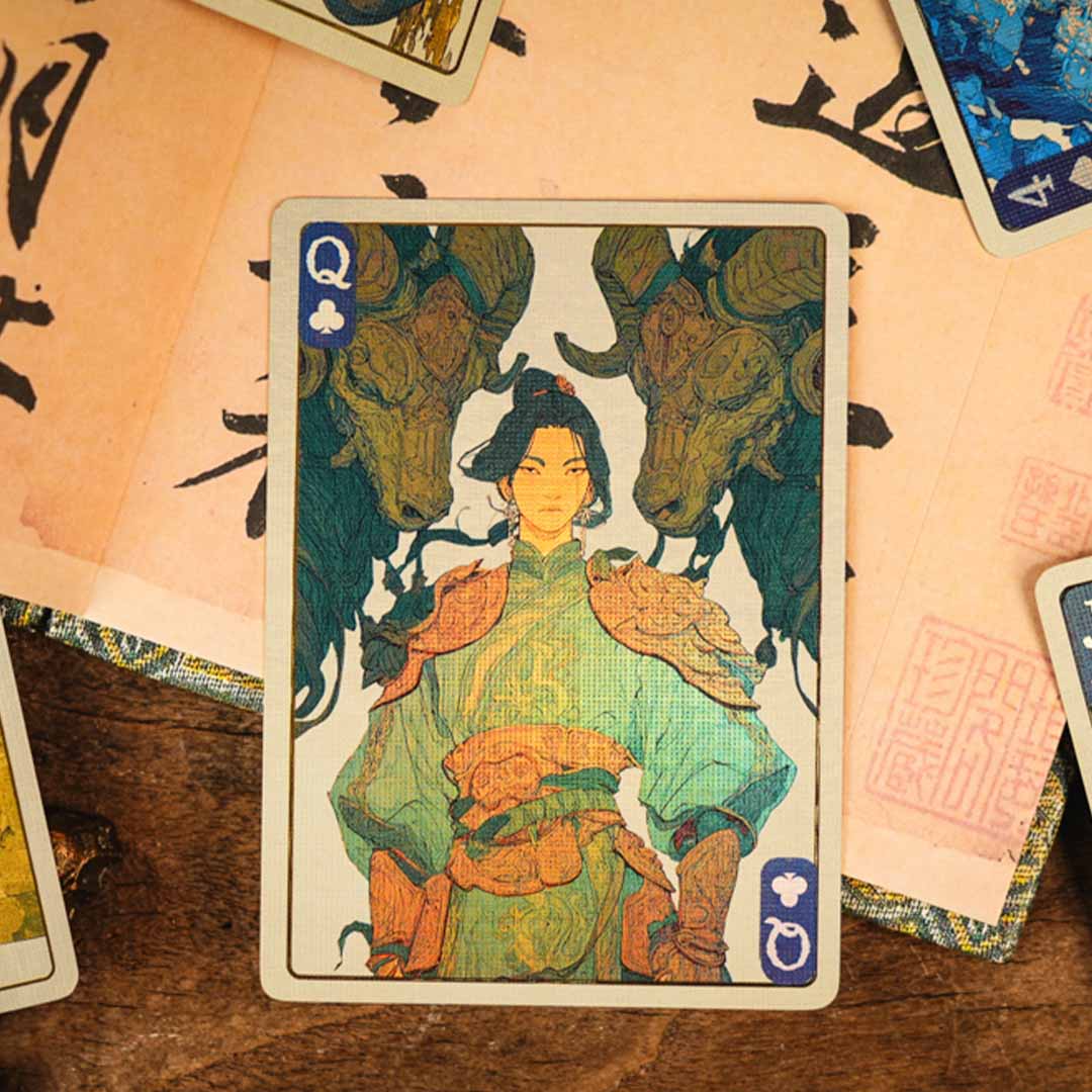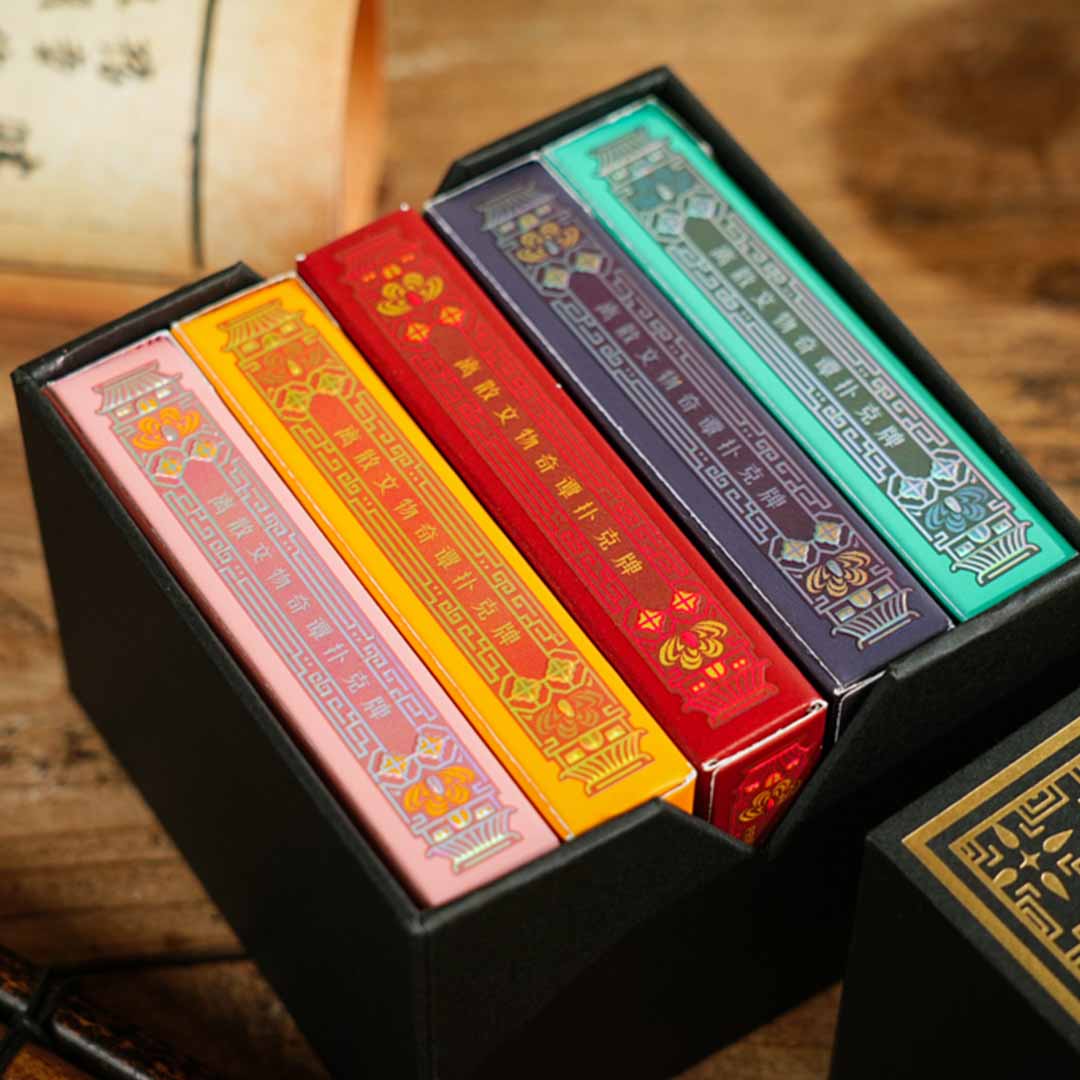 Step into a gallery you can hold with Ancient Relics Playing Cards. Each card portrays a personified Chinese artifact, drawn from 54 museum relics and reimagined with narrative detail. The series spans five chapters - ChunFeng, SheJi, RuYi, LinLang, and FengYa - offering views of ritual, belief, craft, and culture. Printing craft brings depth through selective holo foil, fine embossing, and selective cold foil. Double-layer tucks carry intricate patterns and symbolism. Black core paper with a linen finish supports smooth handling. Choose single decks or complete sets, including gilded editions and a collector's box. Back it on Kickstarter