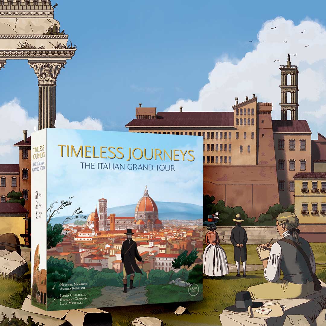 Step into Europe's first great travel rite with Timeless Journeys. Chart routes from Turin to Palermo, debate in cafes, and turn discoveries into entries in your Travel Journals. The core system blends deckbuilding, card chaining, set collection, and route planning, so repeating card types reactivates earlier actions in satisfying sequences. Meet iconic travelers like Byron, Mary Shelley, Twain, and Dickens to unlock new abilities and scoring paths. Choose the Standard Edition or the Collector's Edition with three expansions and deluxe components, plus a solo mode with dedicated automata. Back it on Kickstarter today.