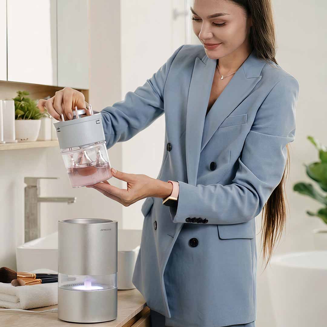 Aprilous Lune turns the dreaded brush wash into a calm ritual with three care steps in one device. Smart clean handles buildup on brushes and sponges, gentle dry brings them back fluffy without heat stress, and UV refresh adds peace of mind for the unseen. An ambient glow makes it pretty enough to leave out. Choose Lune Pro for full clean-dry-UV care or Lune Lite for a lighter daily wash. Thoughtfully designed by a female architect, it supports your routine with precise motion and seamless use. Launch colors include Moonstone and Rose Cloud, with more shades unlocked by stretch goals. Make tool care simple, soothing, and consistent. Back Aprilous Lune on Kickstarter.