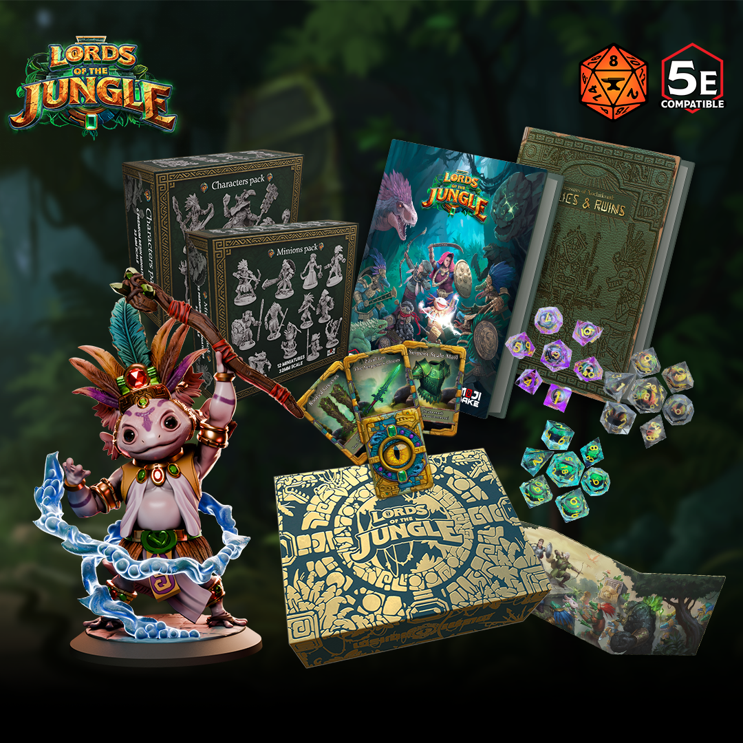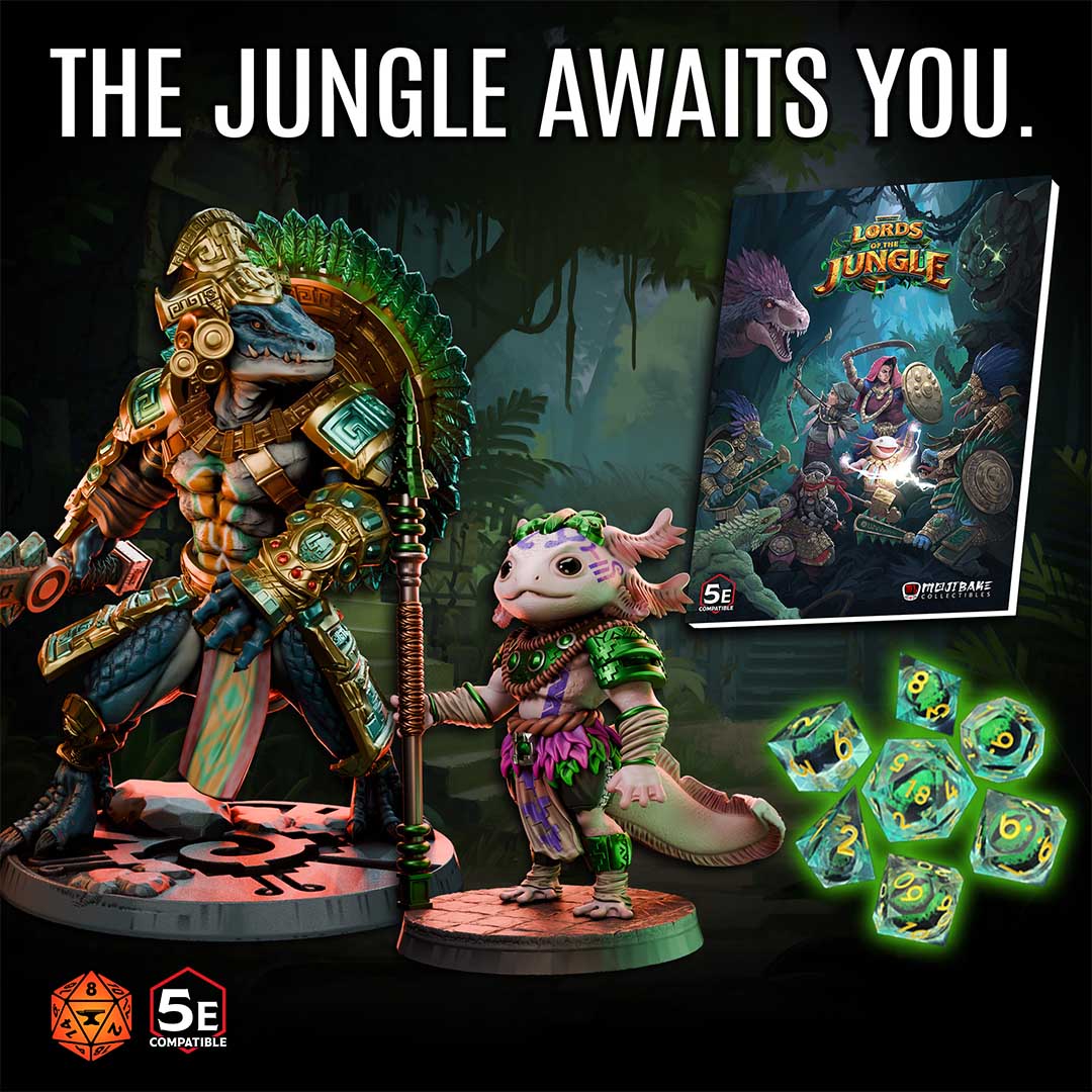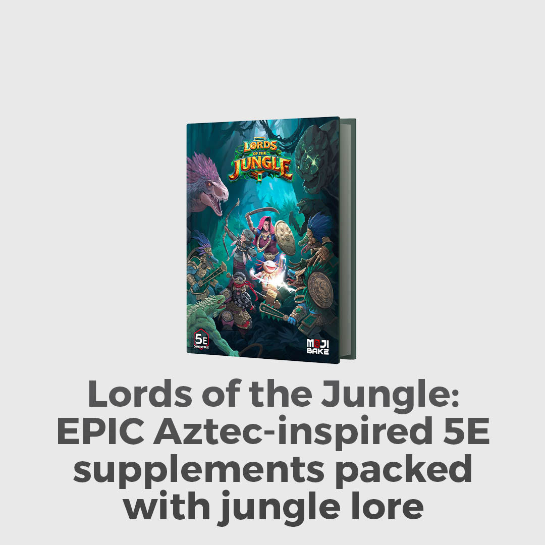 Ancient beasts, primal gods, and untamed magic set the stage for Lords of the Jungle, an Aztec-inspired 5e and 5e+ toolkit for brutal survival, lost temples, and dinosaur filled warfare. Build heroes of the deep wilds with four jungle species, including lizardfolks, axolotians, vinelings, and froglings. Choose new paths like the shaman, witch doctor, and jaguar warrior, then arm them with relics, curses, and over 30 spells that echo with spirits and storms. Run a full 40+ page level 1 to 5 campaign and drop in plug-and-play treasure hunts for levels 1 to 12. Foundry VTT is available, plus 40+ 3D-printable STLs and physical minis for your table. Back it now on Kickstarter.