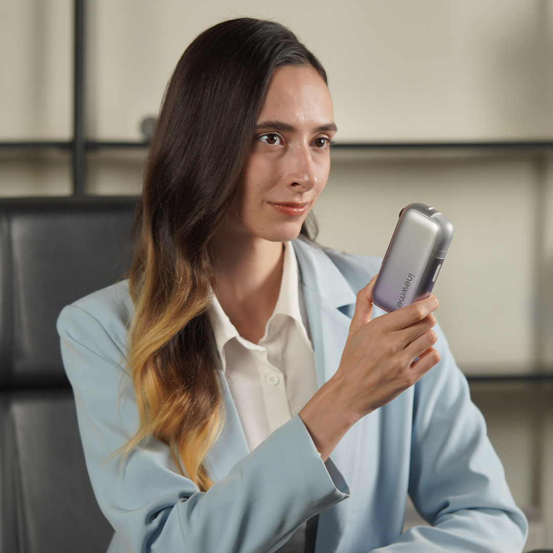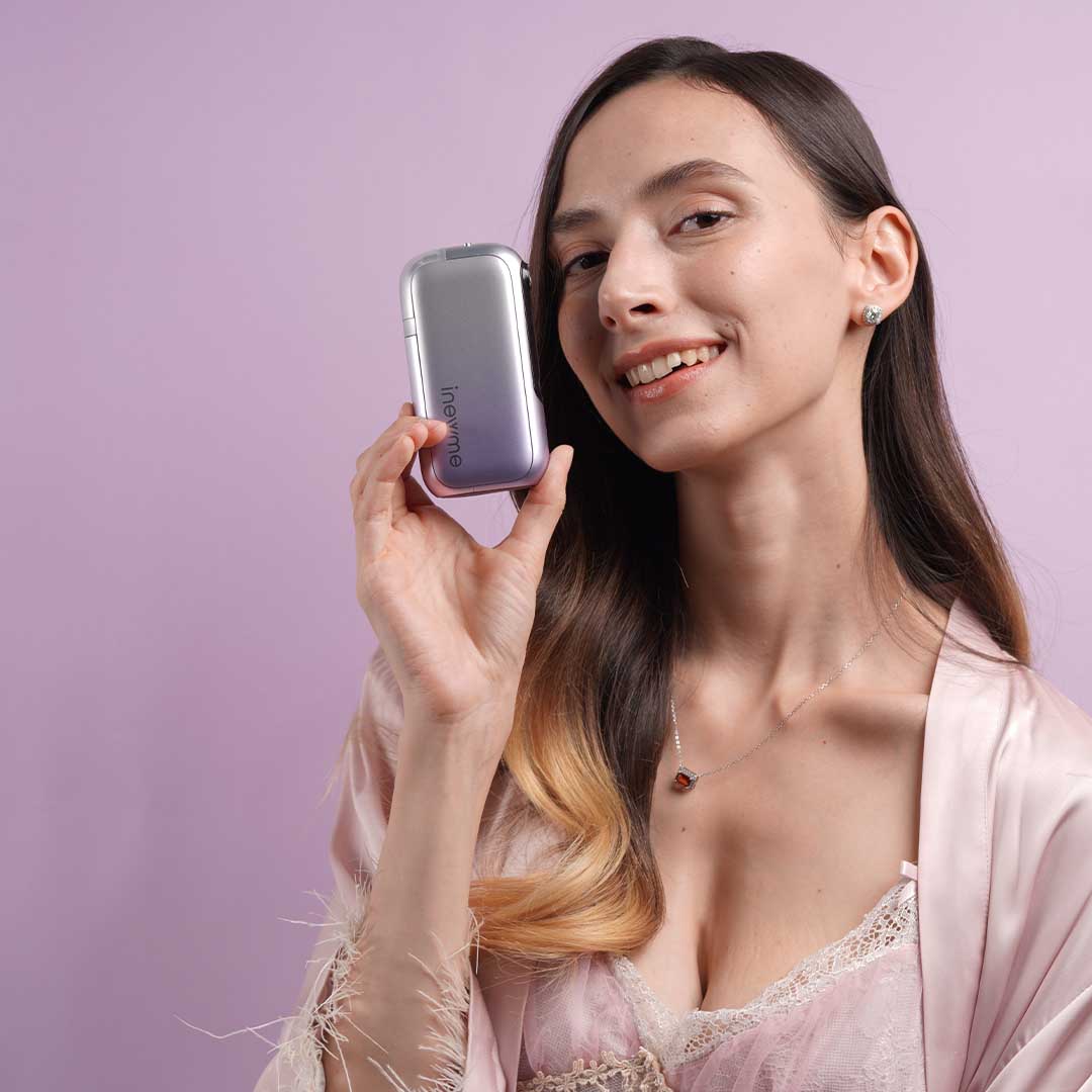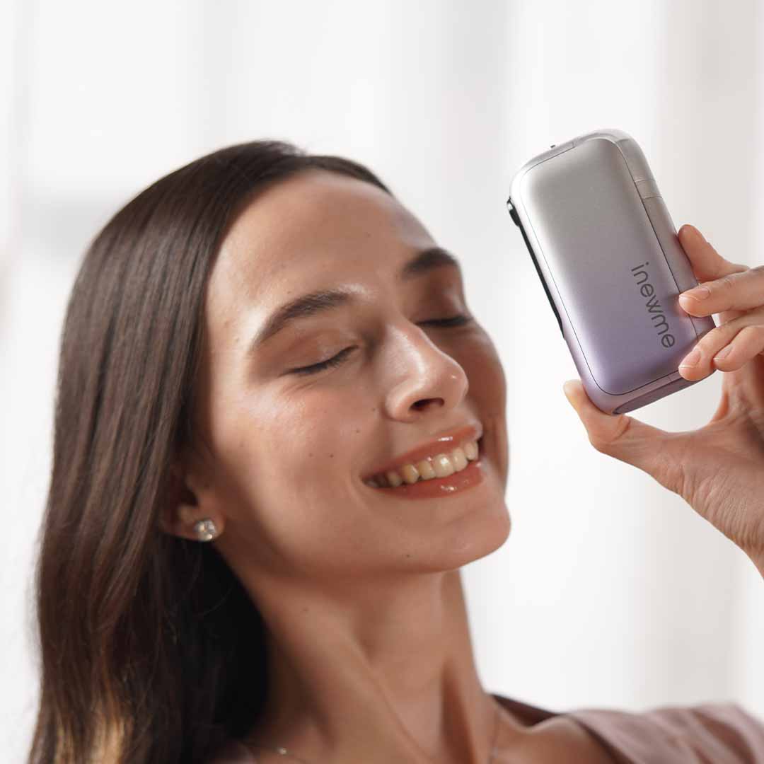 Dual-pump nano mist with distance sensing and 10 µm droplets keeps makeup safe and skin refreshed anywhere.