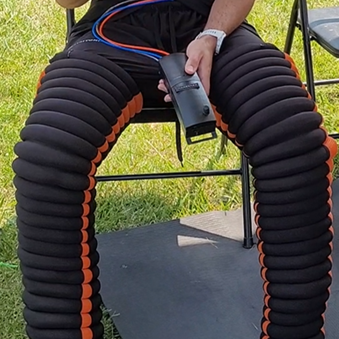 Full-leg compression massage that works while you sit, walk, or stretch - no cords, no bulk.