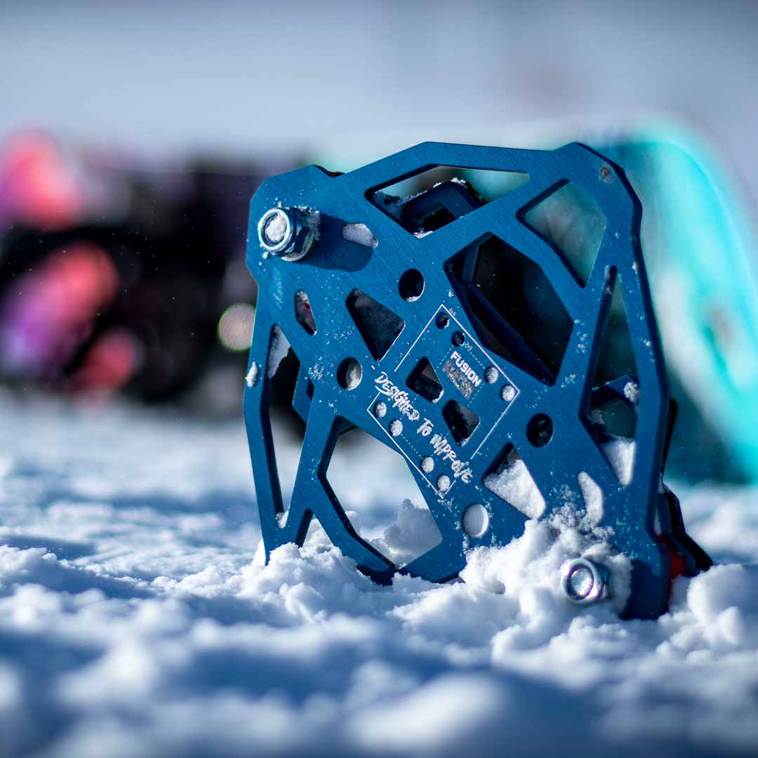 ShredLORD is snowboarding's first suspension system, inspired by mountain bikes and engineered for hard and icy conditions. Mounted to your back foot, it dampens board chatter by absorbing impacts over 5g and settles vibrations fast, helping you hold edge contact within 0.4 seconds in variable snow. Testing with FH Technikum Vienna measured more than 40% reduction of 10g impacts, faster vibration decay, and a forward shift in mass for stronger edge pressure. It installs in minutes with a screwdriver, weighs under 500g, and works with most 4x4, 2x4, and Channel boards. Choose red or blue plates and tune feel with soft bushings. Back ShredLORD on Kickstarter.