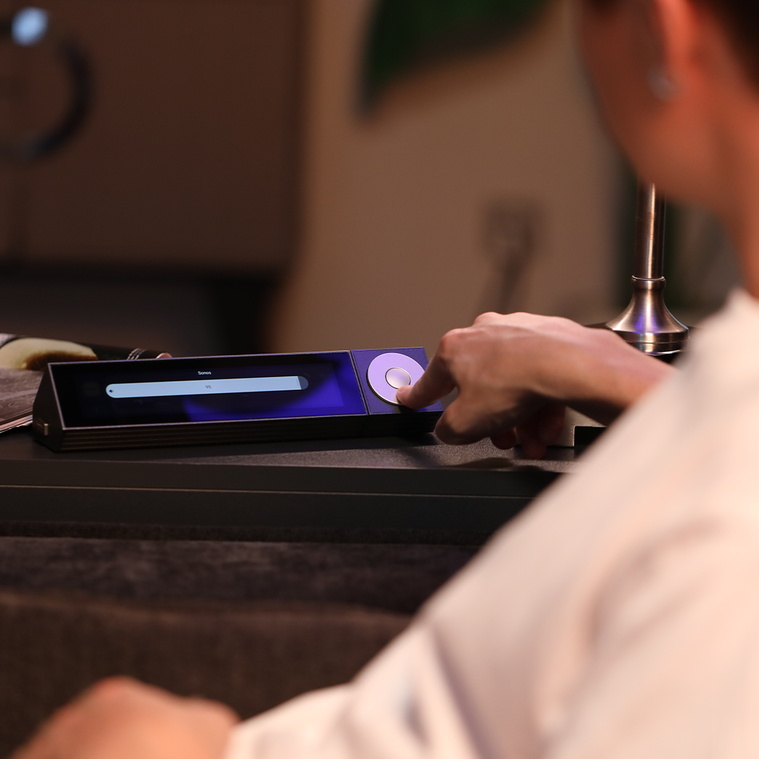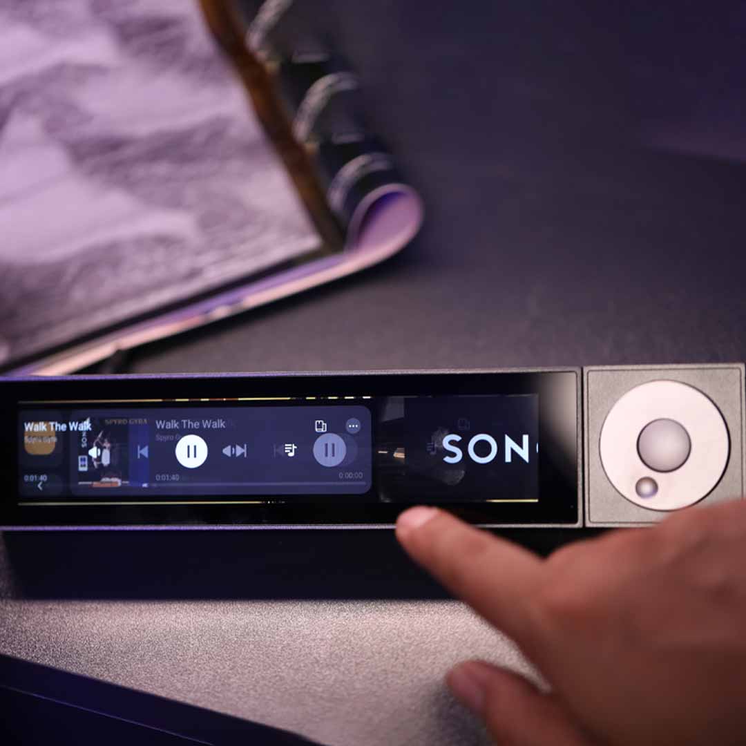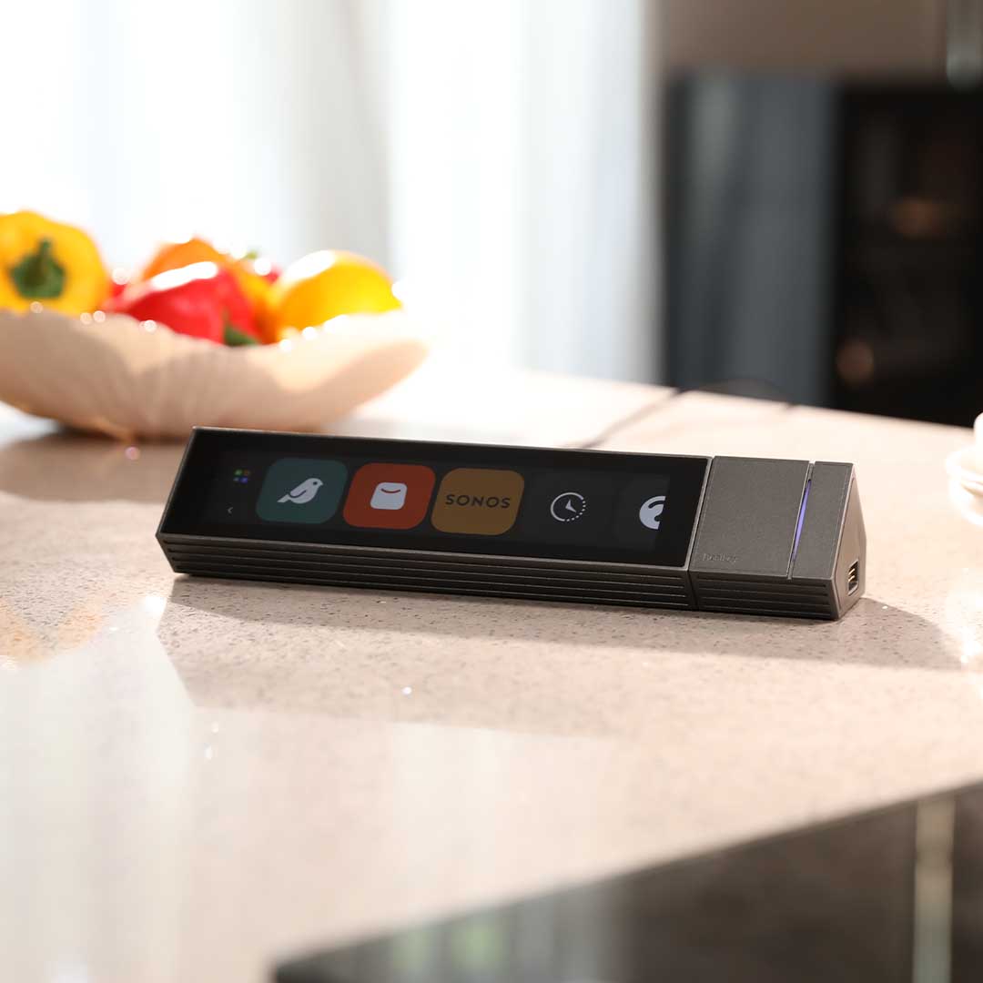 Slim bar-screen with snap-on modules unifies shortcuts, apps, and smart home - switch scenes in a tap.