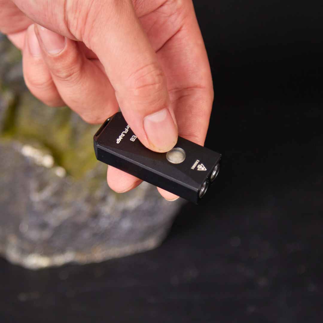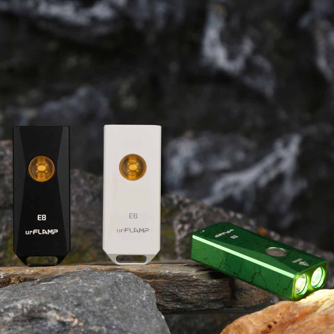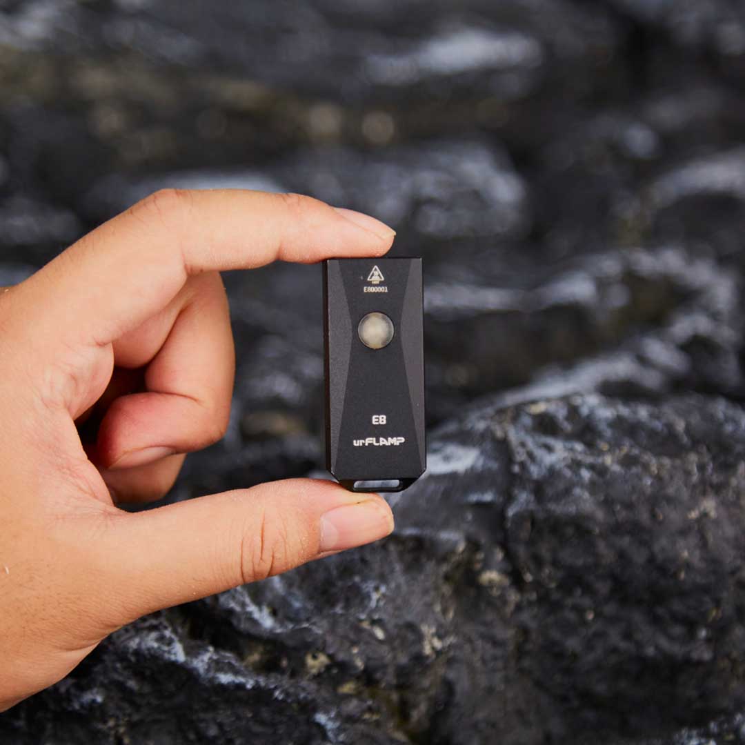 E8 puts 800 lumens and RGB versatility into a keychain-sized body under 1 oz. Two German OSRAM P8 LEDs deliver daylight-bright output, while 8 LED colors and 5 modes cover white, turbo, RGB, SOS, beacon, and memory. The slide-to-protect clip shields the USB-C port and doubles as a secure hat or belt clip, plus a smooth fidget slider. Built from CNC-machined aluminum with IP68 sealing and 1.5 m drop resistance, it is made for real-world carry. A laser corrosion craft finish in Glacier Blue adds grip and visual depth, and the RGB side switch doubles as a battery indicator. Inspired by Cybertruck's geometric lines, it is everyday carry rethought. Back it on Kickstarter now.