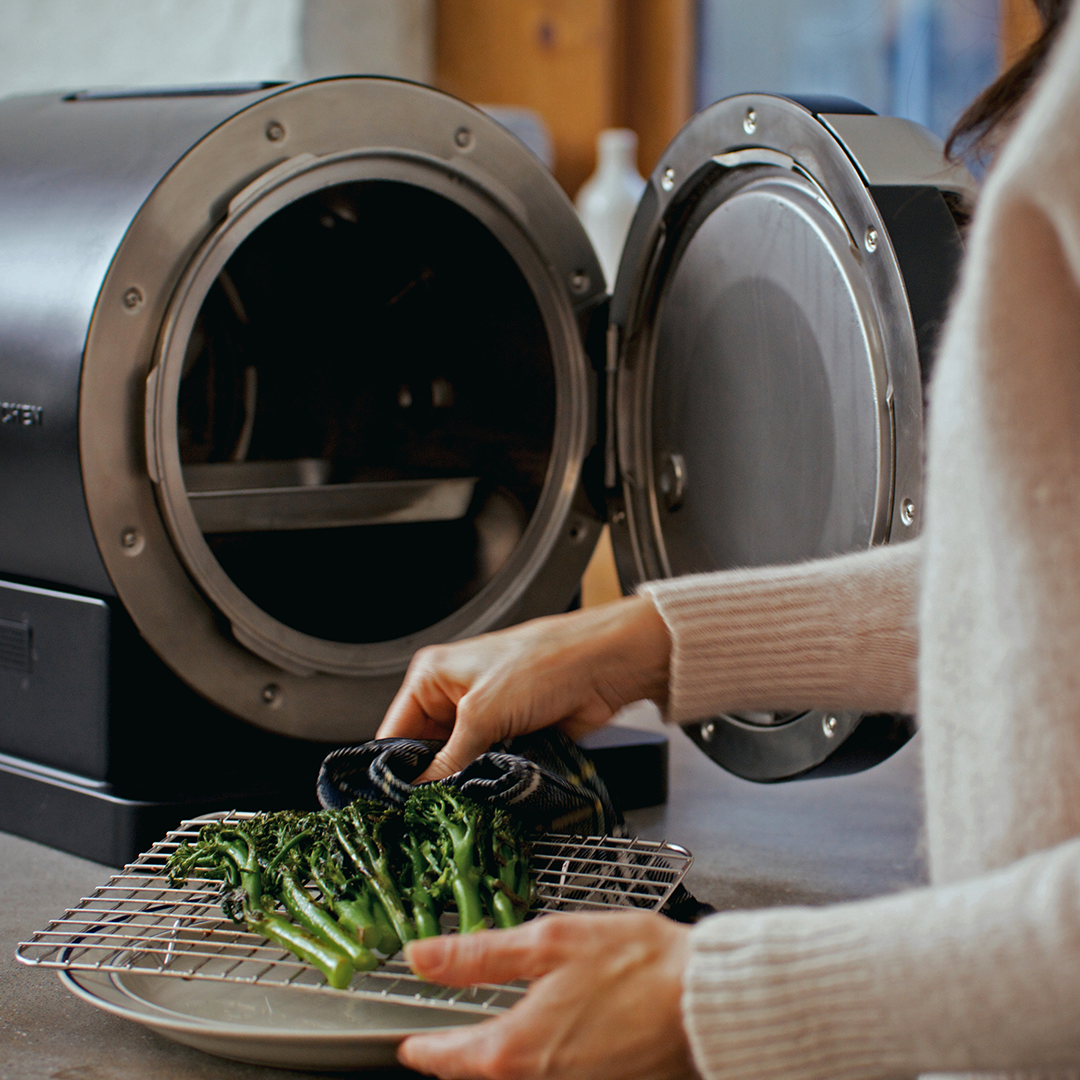 Agari brings Michelin chef quality to your kitchen with AI, 3D scanning, and pressure technology. It scans your food, senses temperature, and cooks proteins and vegetables perfectly - no monitoring needed. Switch from gentle cooking to a high-heat sear in seconds, all at the push of a button. Enjoy faster, juicier, and more flavorful meals with Agari.