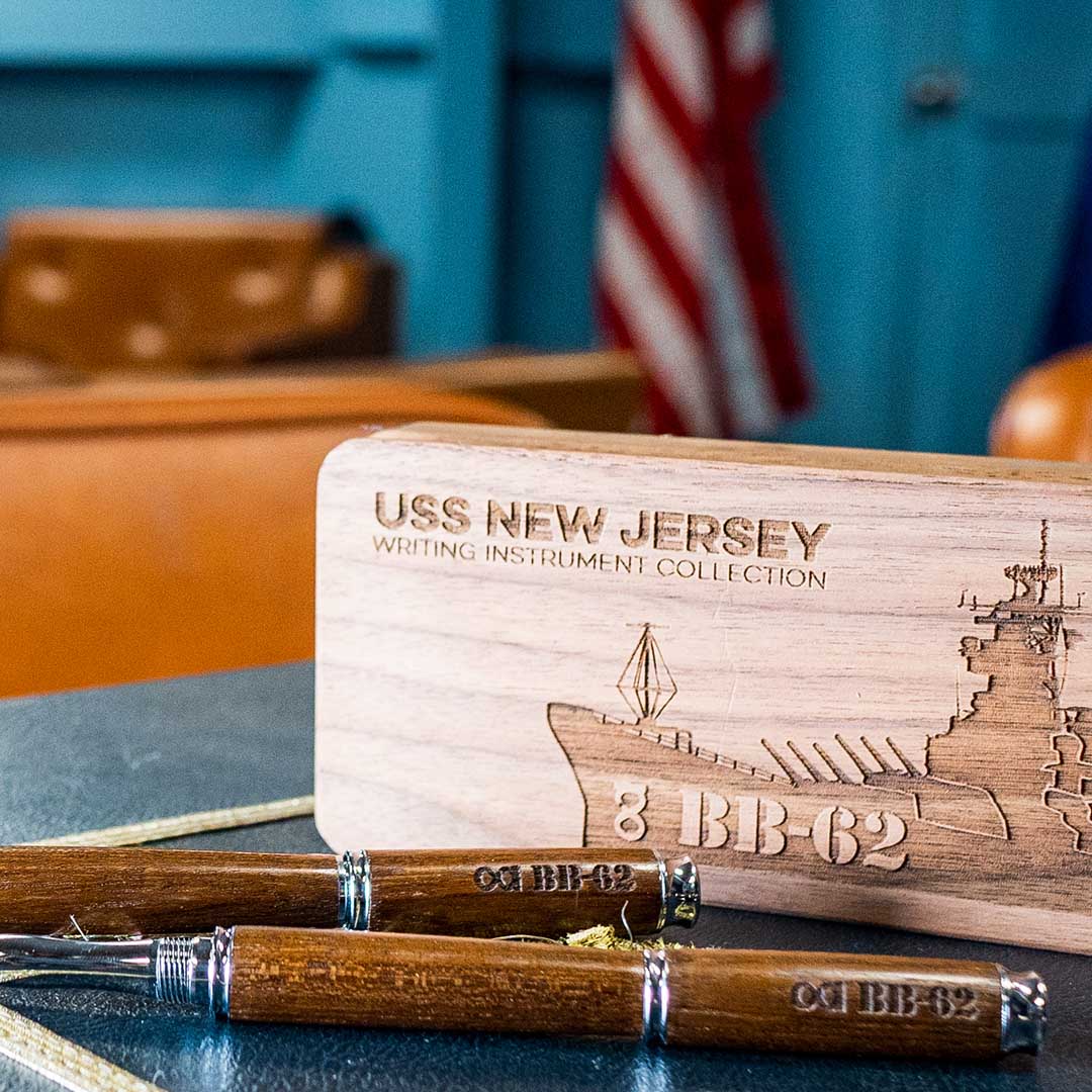 The Black Dragon, BB-62, is the most decorated ship in US history. Now you can celebrate her 50 years of service throughout WWII, the Korean War, and the Vietnam War, with the BB-62 Series. The collection of writing tools is made from the teak decks of the battleship to inspire everything you write. The WWII era collection features brass hardware and a rugged construction reminiscent of the times, while the modern era collection features chrome hardware and modern lines, celebrating the evolution of warfare. Choose from fountain, rollerball, click, and ballpoint pens. Heroes walked along the decks of the Black Dragon. Now you can write with their spirit through the BB-62 Series.