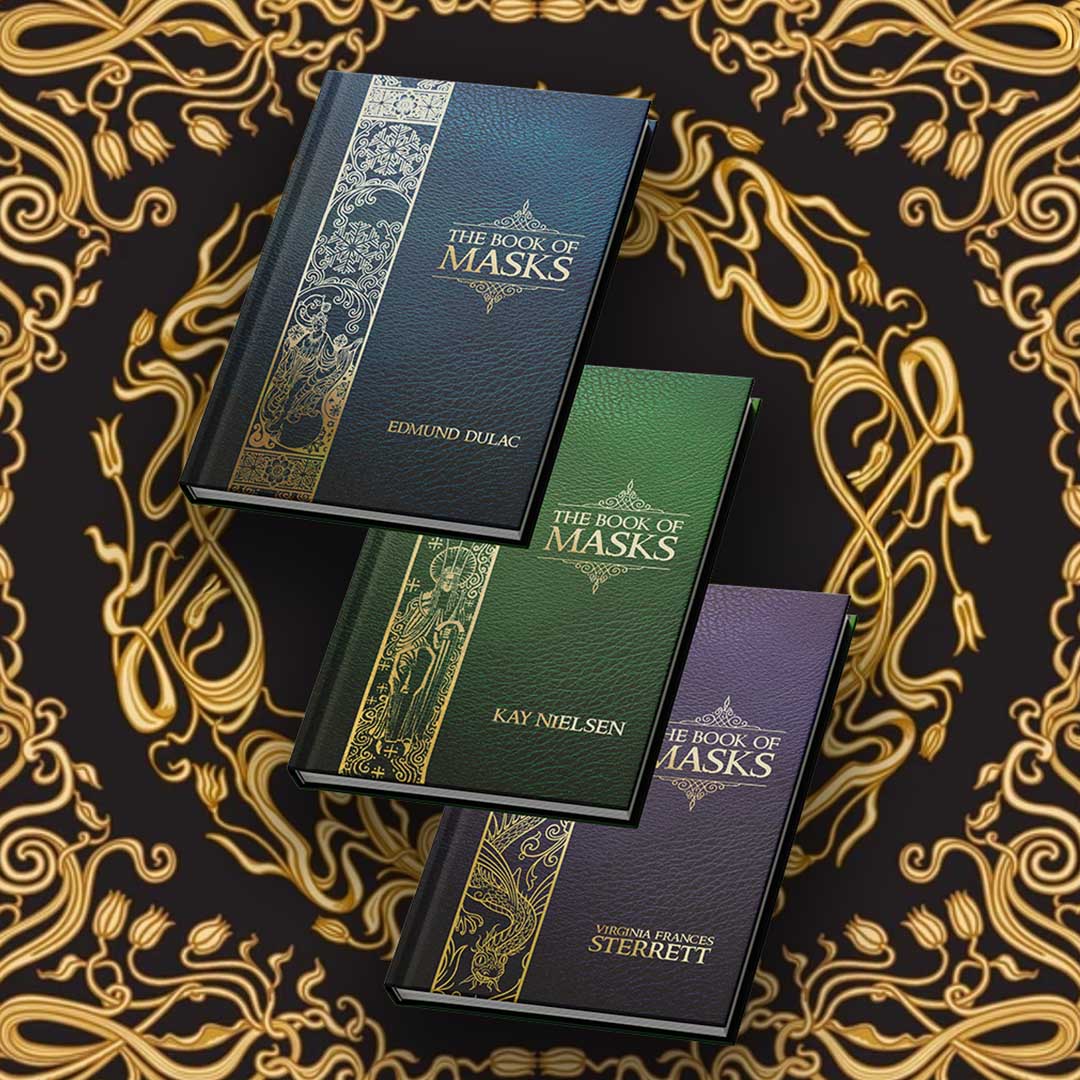 The Book of Masks is a trilogy of hardcover art books reviving the lost fantasy worlds of Kay Nielsen, Edmund Dulac, and Virginia Frances Sterrett. designed as character-driven guides, each spread pairs a restored masterpiece with a narrative profile for instant inspiration at the table or on your shelf. key features include 120+ restored artworks across 240+ pages, 40+ unique character profiles, three premium hardcovers with gold foil and debossed covers, and smyth-sewn binding that lays flat. each character is broken into mask, motifs, myth, mantra, and muse, with flavor items and abilities ready for D&D 5e, OSR, or Pathfinder. back The Book of Masks on Kickstarter.