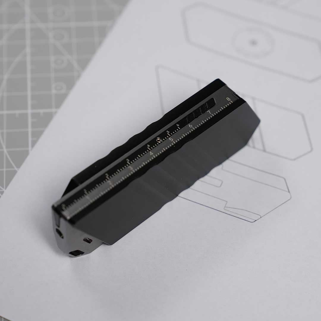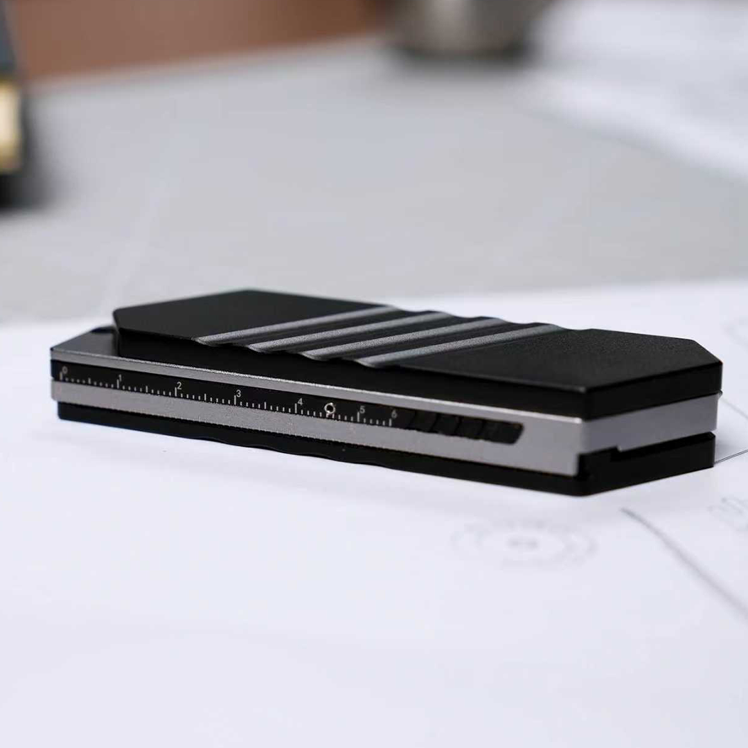 A 6-in-1 titanium EDC tool with magnetic slider, screwdriver bits, precision caliper, ruler, and emergency window breaker.