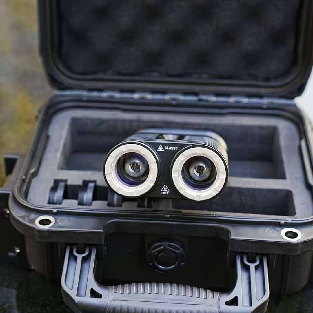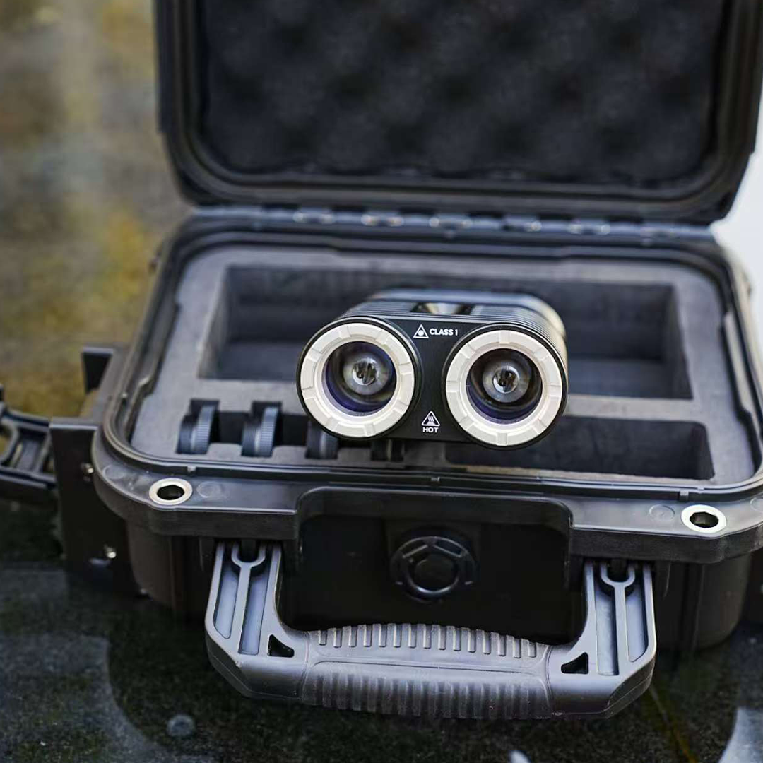 Built for explorers, Lumitwin DL700 brings the world's first all-in-one dual-barrel design to Kickstarter. Two independently controlled LEP white laser modules push a focused beam up to 2000 meters, with one-touch brightness and the option to run either barrel or both. Swap between red, green, and floodlight filters to match night hunting, rescue, or campsite needs. Power comes from two 21700 batteries rated 6000mAh total, with simple Type-C charging and up to 16 hours runtime on a single barrel. A constant-current driver and temperature control keep output stable, while an IP68, drop-tested aluminum alloy body and ergonomic binocular grip are ready for rough trails. Back Lumitwin DL700 on Kickstarter.